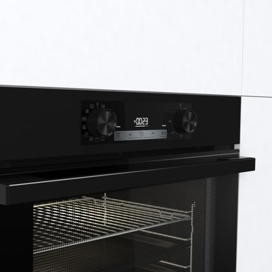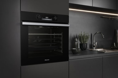 Hisense indbyggede ovn kan passe ind i ethvert køkken og giver samtidig din daglig madlavning fantastiske funktioner. Den sorte skinnende ovn lader dig tilberede, bage og grille alle dine yndlingsretter perfekt uden besværlig rengøring.