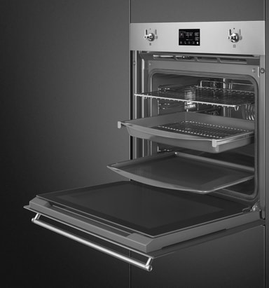 Denne Smeg integrerede ovn SOP6302S2PX har en kapacitet på 68 l, 12 funktioner, stegetermometer og damp-funktion. Ovnen vil hurtigt blive din betroede køkkenhjælper, der tilbereder dine måltider efter din smag hver gang.Læs mere om produktet