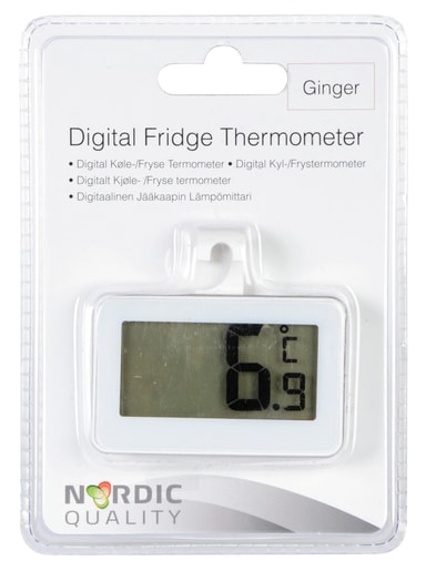 Dette Nordic Quality køleskabstermometer 352422 gør, at du kan kontrollere dit køleskabs temperatur med præcision. Enheden kan måle temperaturer fra -20 til +60°C og har en LCD-skærm, en bagstander og en magnet til brug og placering.Læs mere om produktet