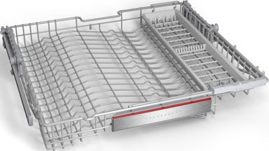 • -        Fleksibel glidende del: muliggør variabel justering og jævn placering af glas med               lang stilk i øverste kurv -        Aftagelig knivhylde/indlæg -        Glidbeskyttelse i bølgeformdesign: genstandene står stabilt -        Knivbeskyttelse: forhindrer knive i at glide ud -        Udtrækssystem med kuglelejehjul