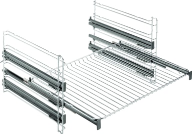 Teleskopskinner med non-stick-belægning gør madlavning nem. Du trækker nemt pladerne ud. Sikkerhedslåsen forhindrer, at de vipper fremad eller glider ud. De er nemme at fastgøre. Så har du begge hænder frie. 3 niveauer