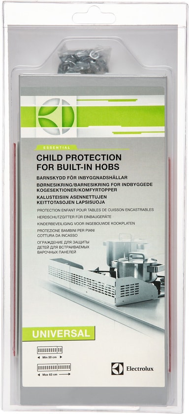 Electrolux Børnesikring til indbyggede kogeplader. Bredde: min 50 cm, max 63 cm. Universel, nem at installere og beskytter mod forbrændinger. Indeholder 1 stk.Læs mere om produktet