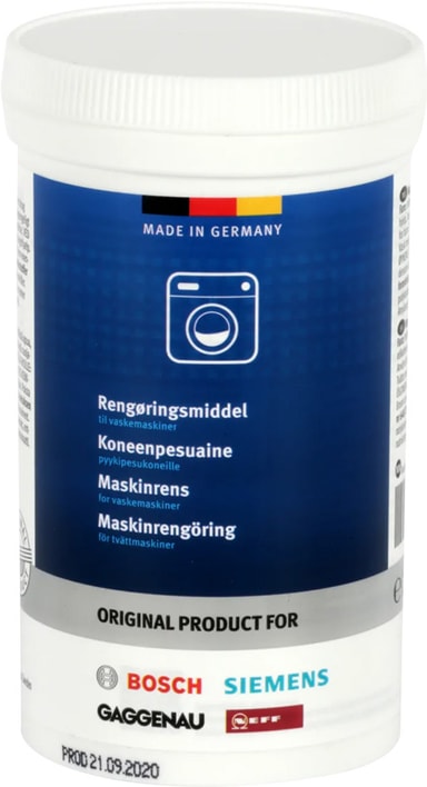 Hold din vaskemaskines indre rent og hygiejnisk med Bosch rengøringsmidlet til vaskemaskiner. Dette clean & care tilbehør hjælper med at forebygge uønskede lugte, forbedre vaskeresultater og bevare et friskt indre.Læs mere om produktet