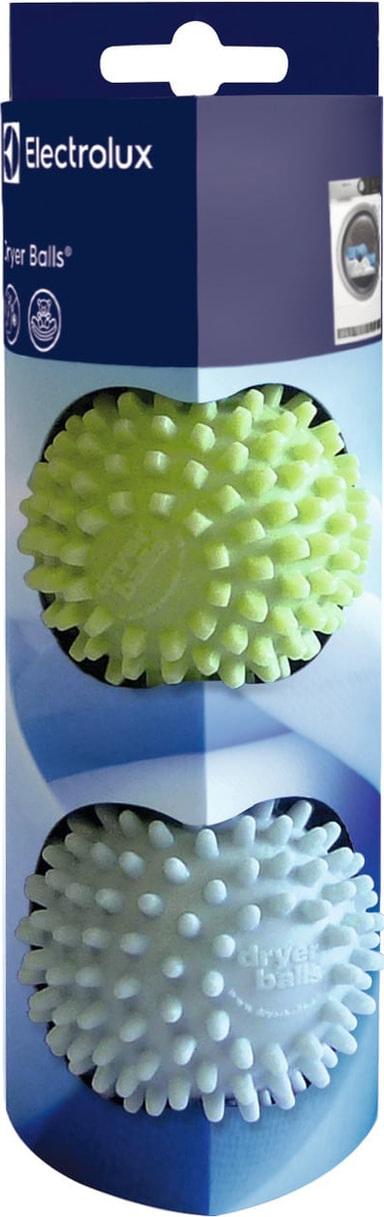 Tørrebolde til tørretumblere. Reducerer tørretiden med op til 25% og gør dit vasketøj blødere. Ideel til større tekstiler som lagner, sengetøj og håndklæder. Indeholder 2 kugler (1 lyseblå og 1 lysegrøn).Læs mere om produktet