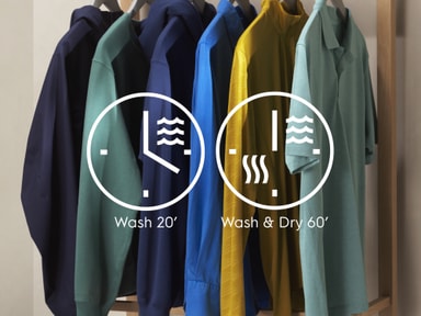 Vask og tør i en arbejdsgang. Eller opfrisk med damp, og spar op til 96% vand*