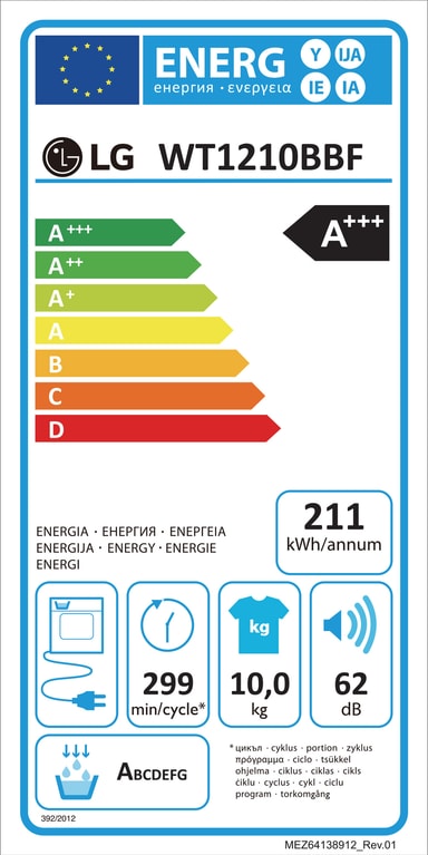 - 12/10kg vask, tørreevne