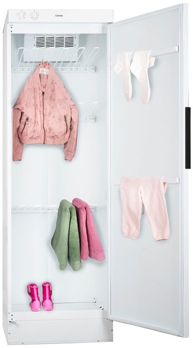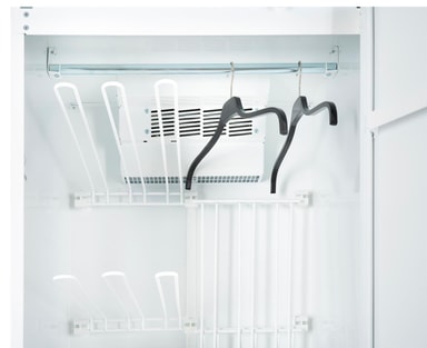 Kapacitet: Dette tørreskab giver effektiv tørring med en vasketøjskapacitet på 4 kg. Med plads til 6 bøjler og ekstra plads på dørene optimerer det tørringspotentialet, samtidig med at det sparer plads.