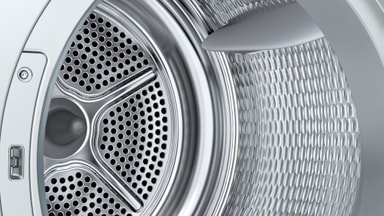 Sensitive Drying System har en tromle i rustfrit stål med en tekstilplejende struktur og bløde medbringere. Dette system tørrer tøjet skånsomt og bevarer teksturerne uden at filtrer tøjet sammen.