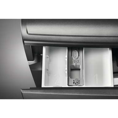 - AEG 6000 seriens slanke maskine med ProSense teknologi® sparer plads uden at gå på kompromis med pleje eller kapacitet.