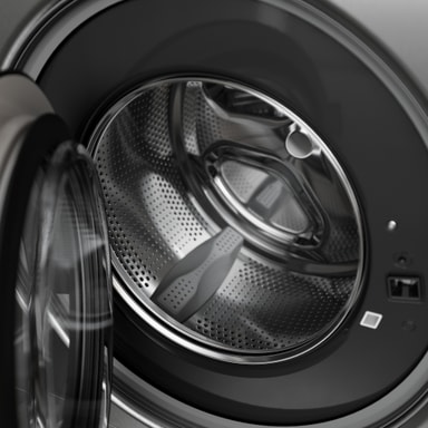 Dørfunktionen er vigtig for en vaskemaskine, og med det rigtige design gør den en stor forskel. Derfor har vi brugt ekstra energi på at designe et unikt dørsystem. Lågen kan åbne 180 grader, hvilket gør det muligt at anbringe vasketøjskurven tæt på maskinen. Takket være Steel Seal™-konstruktionen uden gummibælge er det lettere end nogensinde før at fylde og tømme vaskemaskinen, og med vores nye smarte låsesystem genbruger du energien fra åbningen af lågen, når du lukker den. Bare giv den et lille skub i den rigtige retning, og den lukker så let som ingenting.