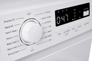 Praktisk dampteknologi fjerner op til 99,9 % af alle allergener og støv fra dit tøj, hvilket mindsker risikoen for allergi og luftvejsproblemer. Den kan også bruges til at desinficere babytøj. Desuden reducerer tilføjelsen af damp under tromlens bevægelser krøllerne med 30%, hvilket betyder, at du kan bruge mindre tid på at stryge dit tøj.