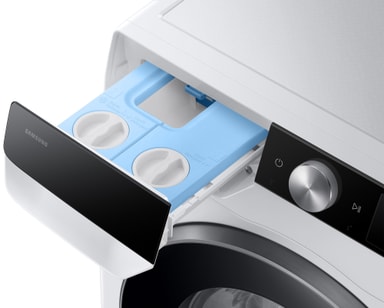 Vask dit tøj omhyggeligt* og skånsomt med mindre vand og vaskemiddel sammenlignet med en Samsung-model uden AI Wash-funktionen. AI Wash benytter avancerede sensorer til at registrere, hvor meget vasketøjet vejer, og hvor bløde materialer det består af, ligesom funktionen løbende holder øje med, hvor snavset vandet er. På den måde kan vandmængde, iblødlægning, skylning og centrifugeringstid optimeres på intelligent vis. Samtidig sørger AutoDose** for, at der hver gang tilsættes den rette mængde vaskemiddel til den konkrete vask.