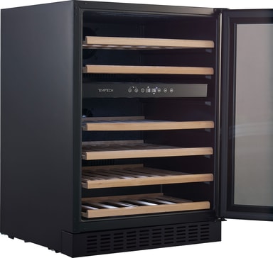 Vinkøleren har en kapacitet på 135 l og kan rumme op til 46 flasker ad gangen. Desuden gør de seks hylder det nemt at få adgang til flaskerne.