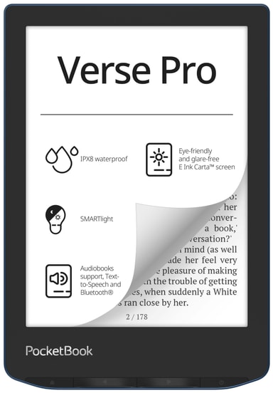 Læs alle dine yndlingstitler, og lyt til dine yndlingslydbøger med PocketBook Verse Pro e-bogslæseren. Den 6" store PocketBook Verse Pro tilbyder brede lydfunktioner, beskyttelse mod vand, SMARTlight-skærmkontrol og meget mere.Læs mere om produktet