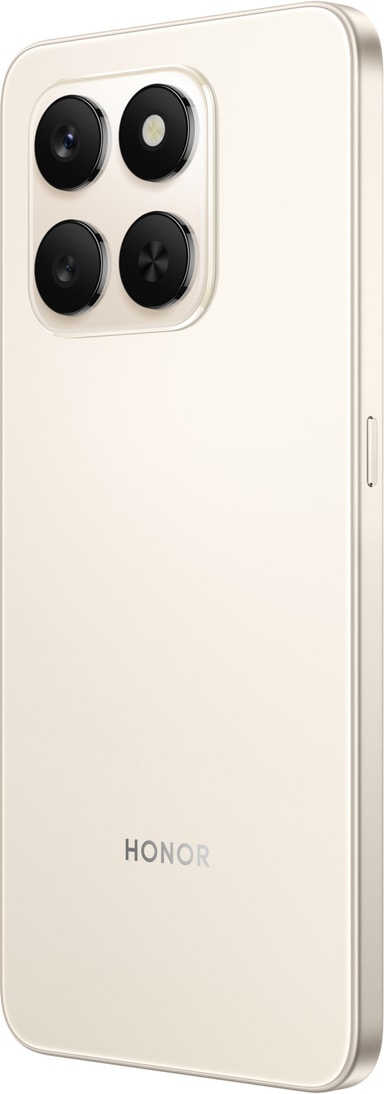 Denne HONOR 400 Smart 5G smartphone i desert gold er udstyret med en Qualcomm SM6374 Pro processor, et 6,77" 120Hz LCD-skærm, 6.500mAh batteri, 50MP kamera, 128GB lagerplads, er vandafvisende og har schweizisk SGS-certificering.Læs mere om produktet