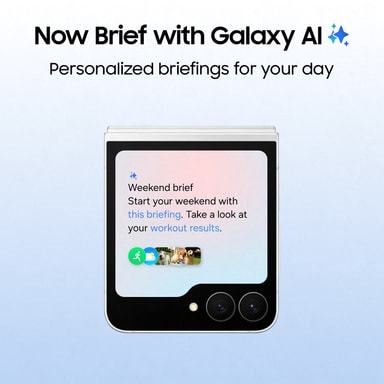 Samsungs bedste og mest personlige UI er bygget fra bunden til både hovedskærmen og frontskærmen. Med skræddersyede baggrunde og interaktive vejrudsigts- og galleriwidgets vil din Flip være helt unik.