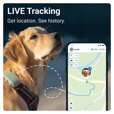 Spor din hund, mens den løber udenfor, leger i skoven eller strejfer rundt i landsbyen takket være sporing i live-tilstand, der giver dig præcise positionsændringer hvert par sekunder.
