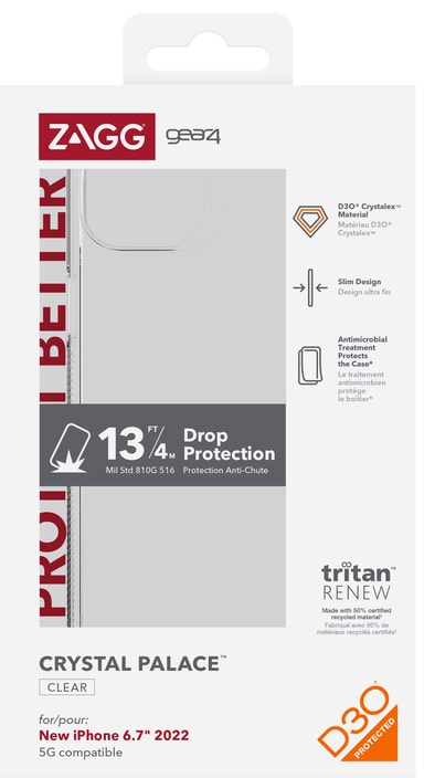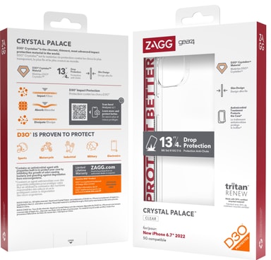 Gear4 Crystal Palace iPhone 14 Plus coveret har et holdbart design, som kan holde til fald på 4 meter. Det gennemsigtige design har antimikrobiel belægning og anti-gulning, så telefonen altid ser fremragende ud. Det er kompatibelt med trådløs opladning.Læs mere om produktet