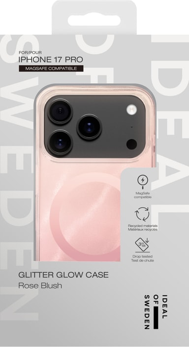 iDeal of Sweden MagSafe etuiet til iPhone 17 Pro tilbyder 3m faldbeskyttelse, problemfri MagSafe opladning og en glimtende finish, der holder din telefon elegant. Det æstetiske, gennemsigtige ydre er lavet af genanvendte materialer.Læs mere om produktet