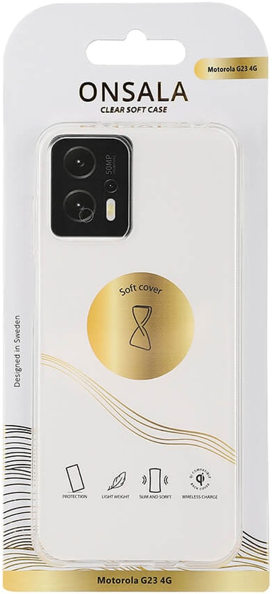 Brug Onsala Motorola G23 etuiet til at gøre din telefons design synligt, og beskyt den samtidig mod tab, slag og ridser. Det slanke etui har nem adgang til porte og tilbyder god håndtering, takket være dens gribbare overflade.Læs mere om produktet