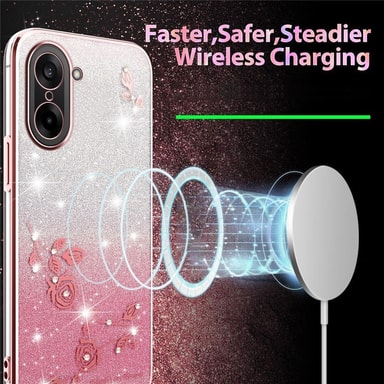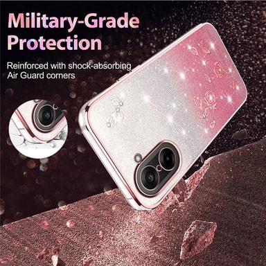 Giv din telefon et strejf af glamour med KADEM Glitter. Dette cover har et smukt evighedsblomst-design med funklende rhinsten, der giver din telefon et elegant og iøjnefaldende look. Den graduerende glittereffekt tilføjer et unikt touch, mens det holdbare TPU-materiale beskytter mod hverdagens slid. Med præcise udskæringer for alle porte og knapper er funktionaliteten bevaret. Coveret er nemt at montere og passer perfekt til din telefon.