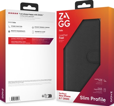 ZAGG folio etuiet tilbyder all-around beskyttelse samt et stilfuldt ydre til din iPhone. De medfølgende kortpladser giver dig mulighed for at gemme op til 3 kort i coveret, og PU-læderet giver et stilfuldt ydre, der passer til din iPhone.