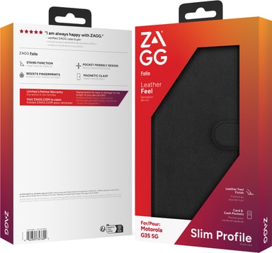 Zagg Motorola G35 5G pungetuiet er et pålideligt etui, der holder din telefon beskyttet i enhver hverdagssituation. Dette slanke, elegante pungetui er lavet af PU-læder og inkluderer kortpladser og et praktisk indbygget stativ.Læs mere om produktet