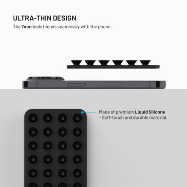 Denne ultratynde Fixed MagMate sugekopholder giver en enkel, håndfri løsning til din telefon. Den er designet til iPhone 12 og nyere modeller og fastgøres sikkert ved hjælp af stærke MagSafe-magneter. Den forbliver pålideligt på plads på glatte overflader med en robust sugebase. Fastgør den på spejle, fliser eller glas, mens du filmer, følger en opskrift eller gør dig klar. MagMate-holderen er fremstillet af blød, holdbar silikone, som er nem at rengøre.