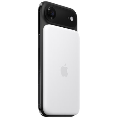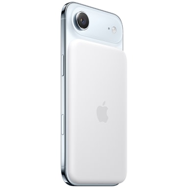 iPhone Air MagSafe-batteriet er tyndt, let og giver 65% mere strøm, som det administrerer intelligent. Det tilbyder op til 12W trådløs hurtigopladning og oplader hurtigere med en 20W+ strømadapter.Læs mere om produktet
