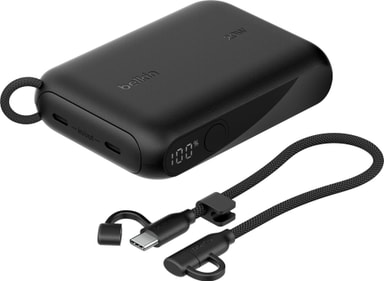 Belkin powerbanken oplader din enhed med 10000 mAh kapacitet, giver hurtig opladning via PD 20W USB-C, understøtter dobbelt opladning, og den har et praktisk digitalt display, så du kan holde styr på opladningsprocessen.Læs mere om produktet