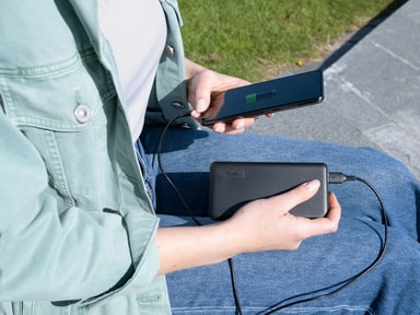 Trust Primo ECO 10.000 powerbanken giver dig mulighed for at oplade din enhed hvor som helst takket være dens ekstremt bærbare formfaktor. Det store batteri på 10.000 mAh sikrer flere opladninger af din telefon eller tablet. Opladningsoutputtet på 15 W giver dig hurtige opladningshastigheder. Oplad næsten alle tænkelige enheder med sættet af både USB-C- og USB-A-porte, og fyld strøm på powerbanken igen via USB-C- eller micro-USB-porten.