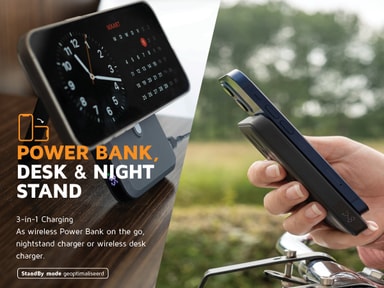 Powerbanken har et kompakt design, der ikke tynger dig ned. Du kan nemt putte den i lommen eller tasken og holde din telefon opladet, selv når du er på farten. Det behagelige greb lader dig bruge telefonen, mens den oplader, så du aldrig går glip af noget. Derudover kommer powerbanken med et indbygget kickstand, der gør det muligt at oplade telefonen i landskabs- eller portrættilstand for behagelig videovisning, selv under opladning.