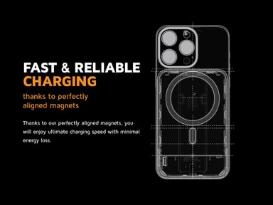 Perfekt til den aktive livsstil, nu kan du oplade din iPhone uden unødvendige kabler, mens du er på farten. Stærke magneter sikrer præcis tilpasning med din telefon, mens 15W MagCharge Ultra-teknologien giver din telefon et 20% boost på bare 20 minutter. Den trådløse opladningsfunktion er kompatibel med iPhone 12/13/14/15.