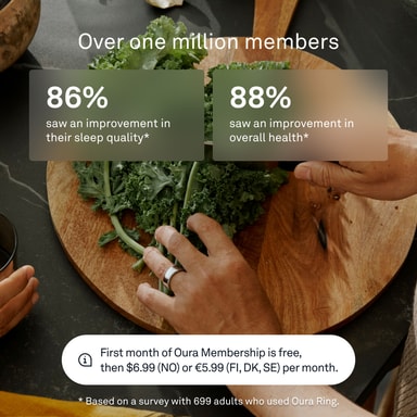 Nyd nye funktioner og produktopdateringer med Oura-medlemskabet, som hjælper med at gøre din sundheds- og aktivitetsopfølgning endnu mere personlig. Nye brugere får den første måned gratis, og medlemskabet koster €5,99 per måned.
