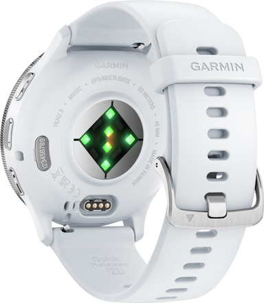 Dette Garmin Venu 3 smartwatch har en lys 1,4" AMOLED-skærm, ideel til træning udenfor, når solen skinner. Uret har en overflod af trænings- og fitnessfunktioner, herunder 5ATM vandafvisning, puls og blodtryksmåler samt wellness-funktioner for at holde dig informeret om dit helbred.Med Bluetooth-forbindelsen kan du nemt se meddelelser, opkald eller musikindstillinger på dit håndled, og du kan betale trådløst via Garmin Pay uden at skulle tage din telefon ud. Urremmen er ideel til håndled med omkreds på 135 til200 mm.