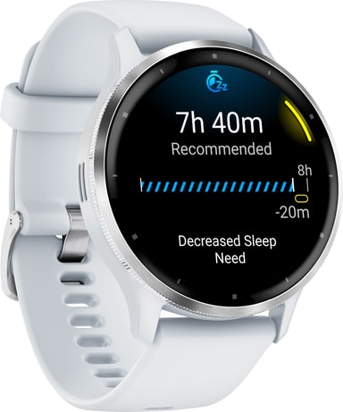Venu 3 tilbyder integrerede GPS-placeringstjenester til måling af din afstand og tempo med bemærkelsesværdig nøjagtighed, selv indendørs. Du kan spore aktivitet, selv efter træning. Smartwatchet tæller dine skridt, løbe- og cykelture, eller giver dig besked, hvis du sidder nedlængere end en time.