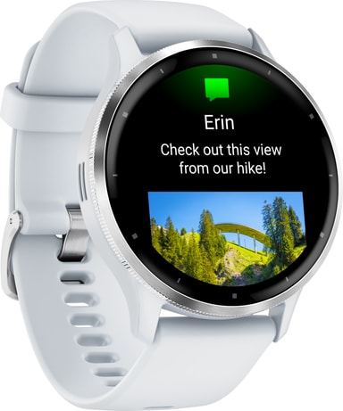 Venu 3 har masser af funktioner, når den er tilsluttet din smartphone. Besvar telefonopkald, se nye meddelelser, og skift nemt mellem sange med Bluetooth-forbindelsen. Når du er tilsluttet en Android-enhed, kan du desuden svare på beskeder via et skærmtastatur og nemt se indgående fotos. Derudover kan du nemt uploade dine data fra dit smartwatch og gennemgå dine træningsfremskridt på den store skærm.