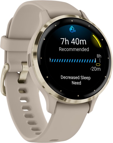 Venu 3S tilbyder integrerede GPS-placeringstjenester til måling af din afstand og tempo med bemærkelsesværdig nøjagtighed, selv indendørs. Du kan spore aktivitet, selv efter træning. Smartwatchet tæller dine skridt, løbe- og cykelture, eller giver dig besked, hvis du sidder nedlængere end en time.