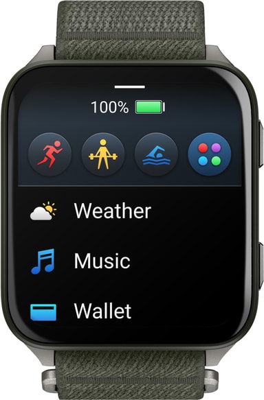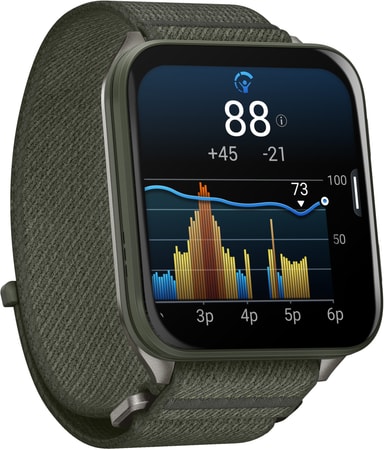 Uret er udstyret med en 2-tommers AMOLED-skærm med en lys og letlæselig grænseflade, beskyttet af ridsebestandigt safirglas. Den lette titanium bagside og ComfortFit nylonrem sikrer komfort hele dagen, mens det elegante og alsidige design gør uret egnet til enhver lejlighed – om du er i fitnesscenteret, på kontoret eller ude om aftenen.