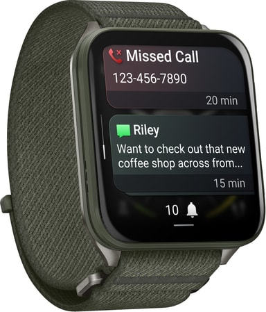 Hold forbindelsen med indbygget mulighed for opkald, så du kan foretage og modtage opkald direkte fra dit håndled, når det er parret med din smartphone. Stemmekommandoer giver dig mulighed for at styre urfunktioner eller bruge din smartphones stemmeassistent til at svare på beskeder, sætte påmindelser og meget mere.