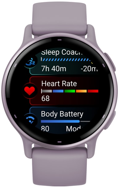 Smarturet kan spore gåture, løb, cykling, kredsløbstræning, yoga og andre aktiviteter. Det er også vandtæt og har en vandmodstand på 5ATM, så du stadig kan have det på i poolen eller i badet. Body battery-funktionen giver dig mulighed for at se din krops energiniveauer, så du ved, hvornår du er klar til aktivitet. Vivoactive 5 har også en kørestolstilstand, der sporer skub og tilbyder forudindlæste træningsprogrammer, specifikke for kørestolsbrugere. Takket være den gratis Garmin Coach app, kan du få personlige træningsplaner.