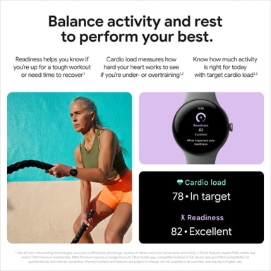 Google Pixel Watch 3 er udviklet med henblik på ydeevne. Den banebrydende Actua-skærm er større, lysere og enormt responsiv. Slå dine rekorder med avancerede løbefunktioner fra Fitbit, og brug den forbedrede parathedsscore og registrering af cardiobelastning til at sikre optimal restitution. Og hold styr på din dag med hjælp fra Google.