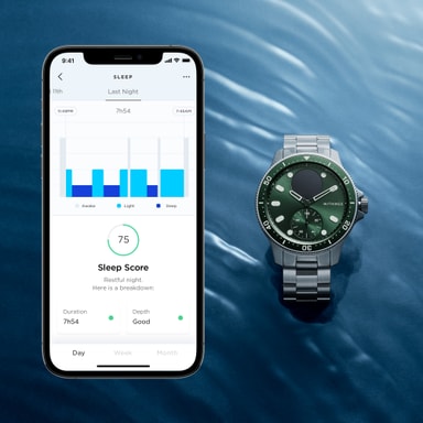 ScanWatch måler pålideligt din daglige aktivitet, herunder gang, løb, svømning, afstand (via GPS fra en forbunden smartphone) og antal forbrændte kalorier.Smartwatchet måler også din søvn og giver en søvnscore baseret på let og dyb søvn, søvnlængde og opvågning. På den måde kan du indstille en stille vibrerende alarm, der vækker dig på det rigtige tidspunkt under din søvncyklus, så du kan føle dig frisk om morgenen.