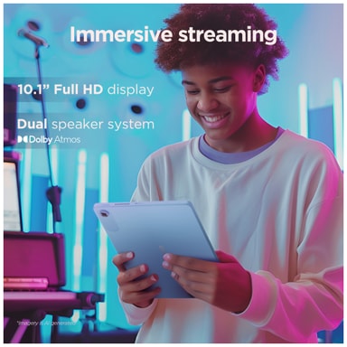 Lenovo Tab har en 10,1" Full HD-skærm med en opløsning på 1920 x 1200 pixels, der leverer op til 1080p streamingkvalitet. Dette sikrer, at dine yndlingsserier og videoer vises med imponerende klarhed og detaljer. Den TÜV-certificerede øjenplejeteknologi reducerer belastningen af øjnene og giver mulighed for komfortable, lange visningssessioner. Opdateringshastigheden på 60Hz giver jævne billeder, hvilket gør den perfekt til at se videoer, browse eller læse.