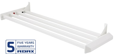 Adax Basic tørrestativet 230510 med 80 W effekt, tørrer hurtigt dine våde sko eller tøj, f.eks. handsker eller kasketter. Dette praktiske og holdbare tørrestativ er 87 cm langt, har en tænd/sluk-knap og kan nemt monteres på væggen, takket være skruer og vægmontering. Dette produkt har 5 års garanti.