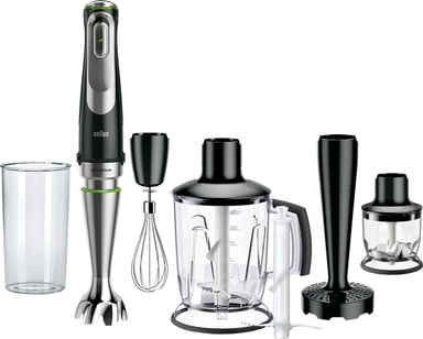 Blend, hak, riv eller pisk dine ingredienser med denne Braun MultiQuick 9 stavblender MQ9147X. Den kører på 1.200 W og har en ActiveBlade-teknologi og en imode-teknologi med 3 hastigheder.Læs mere om produktet