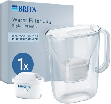 Brita Style Essential vandkanden 1057796 rummer 2,4L og bruger Maxtra Pro-teknologi til at reducere kalk og urenheder i postevand. Den har et vippelåg for nem påfyldning, et ergonomisk håndtag og en filterudskiftningsindikator.Læs mere om produktet