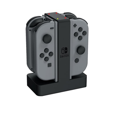 Med den officielt godkendte Joy-Con opladningsdock til Nintendo Switch kan du oplade op til 4 af dine Joy-Con controllere på samme tid. Du skal blot isætte den afladte Joy-Con controller i docken for at starte opladningen. LED indikatorer på toppen af docken viser dig, hvornår controlleren er fuldt opladt. Du kan have ekstra controllere klar til spil med flere spillere, eller til lange spil, hvor du skal skifte controller hurtigt. Basen på docken er tung, så den ikke vælter ved et uheld. Opladningsstationen forbindes til strøm via USB-kabel.