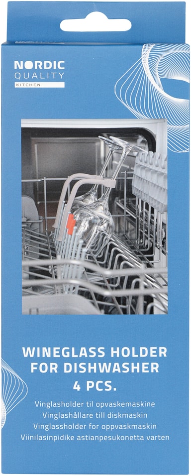 Nordic Quality vinglasholderen til opvaskemaskine 352354 holder dine vinglas oprejst under opvask og sikrer, at de ikke går i stykker og bliver helt rene. Pakken indeholder 4 dele, som passer til de fleste opvaskemaskiner og er lette at installere.Læs mere om produktet