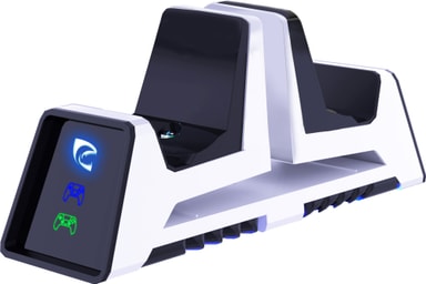 Piranha x GhostGear PlayStation universal opladeren er en dual-controller opladningsdock, der er kompatibel med PS5 og PS4. Den har magnetiske induktionspuder og LED-indikatorer til opladningsstatus, så du kan strømline dit gaming-setup.
